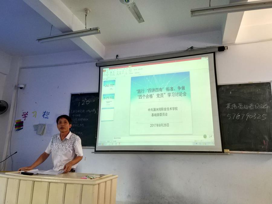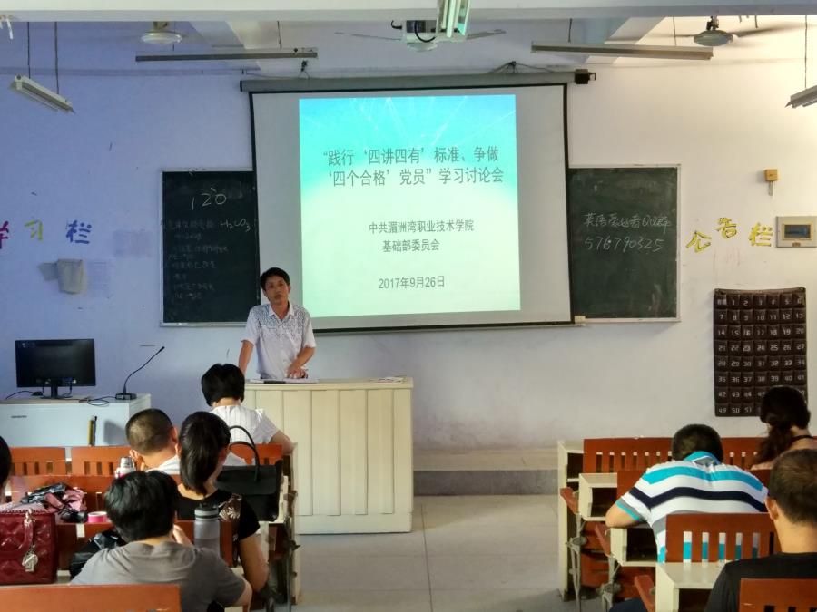 基础部开展“践行‘四讲四有’标准、争做‘四个合格’党员”学习讨论会