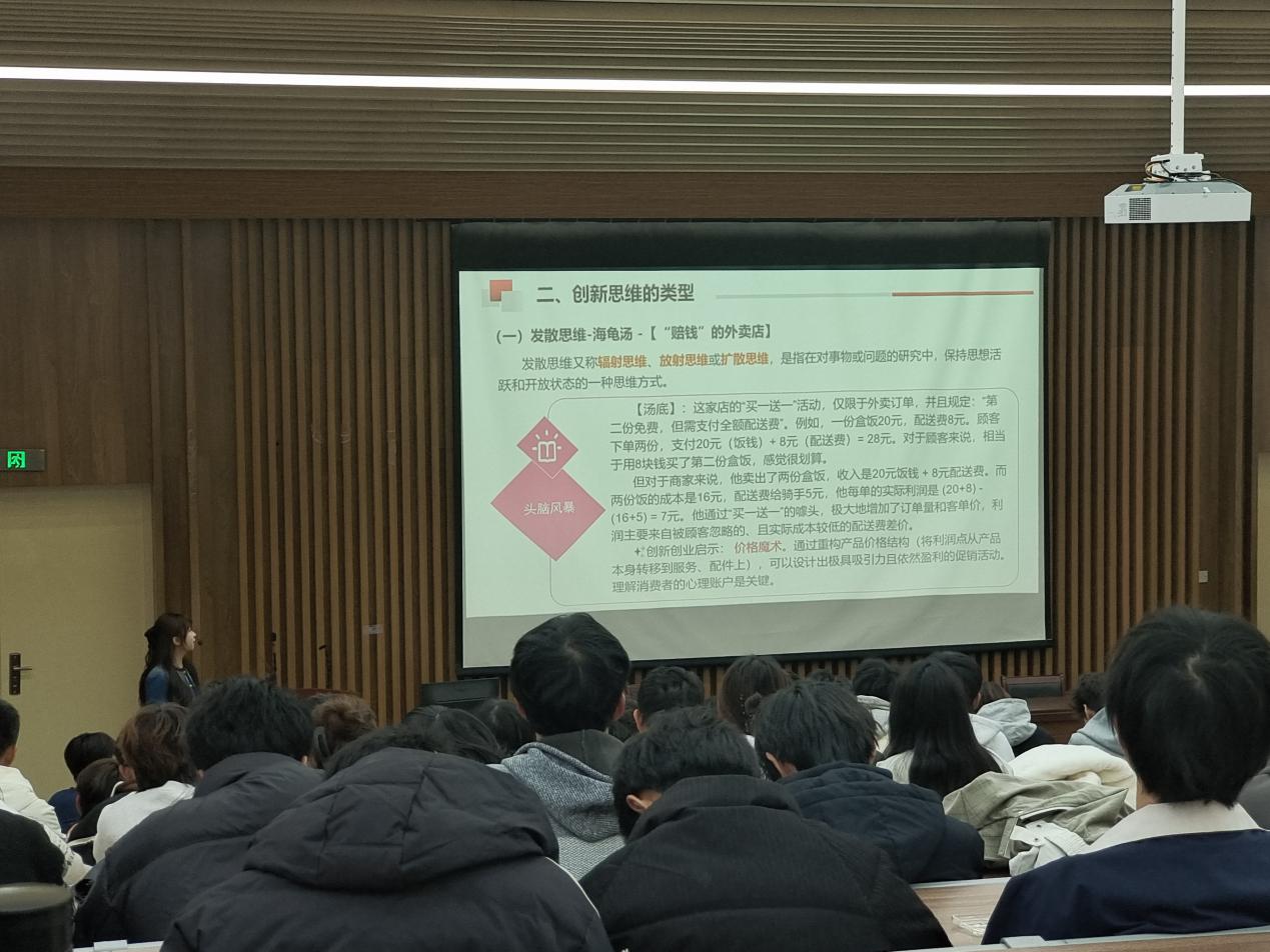 为深化专业教学改革,提升青年教师授课能力,近日,我院新入职教师林书仪的《创新创业基础》公开课在信息楼中203顺利举行。学院领导、教务科教师及同组教师到场观摩评议,现场教学氛围浓厚。本次课程紧扣“创新思维与创新方法”核心章节,旨在引导学生打破思维定式,掌握实用的创新工具,为未来的学术探索与创业实践奠定坚实基础。